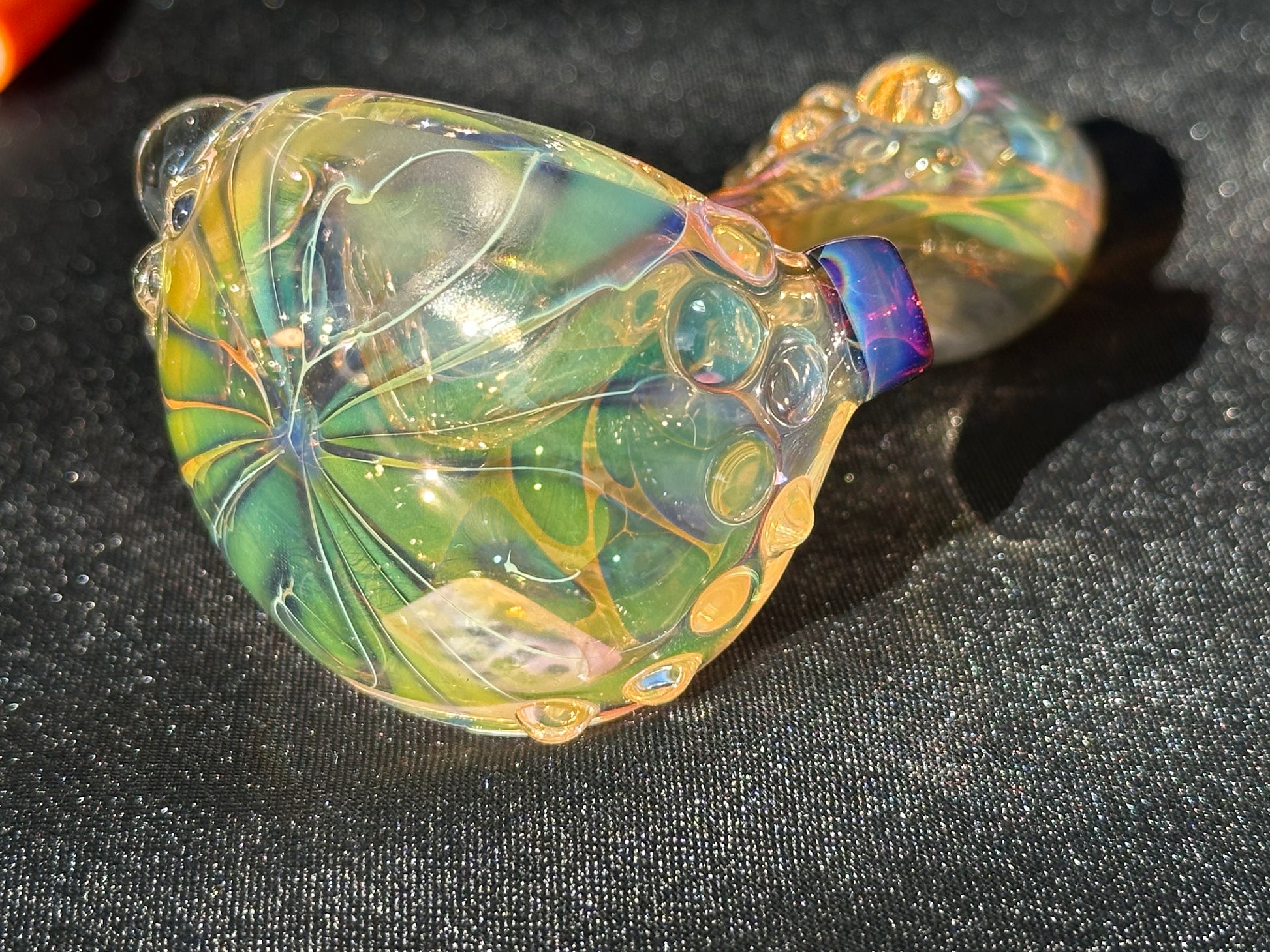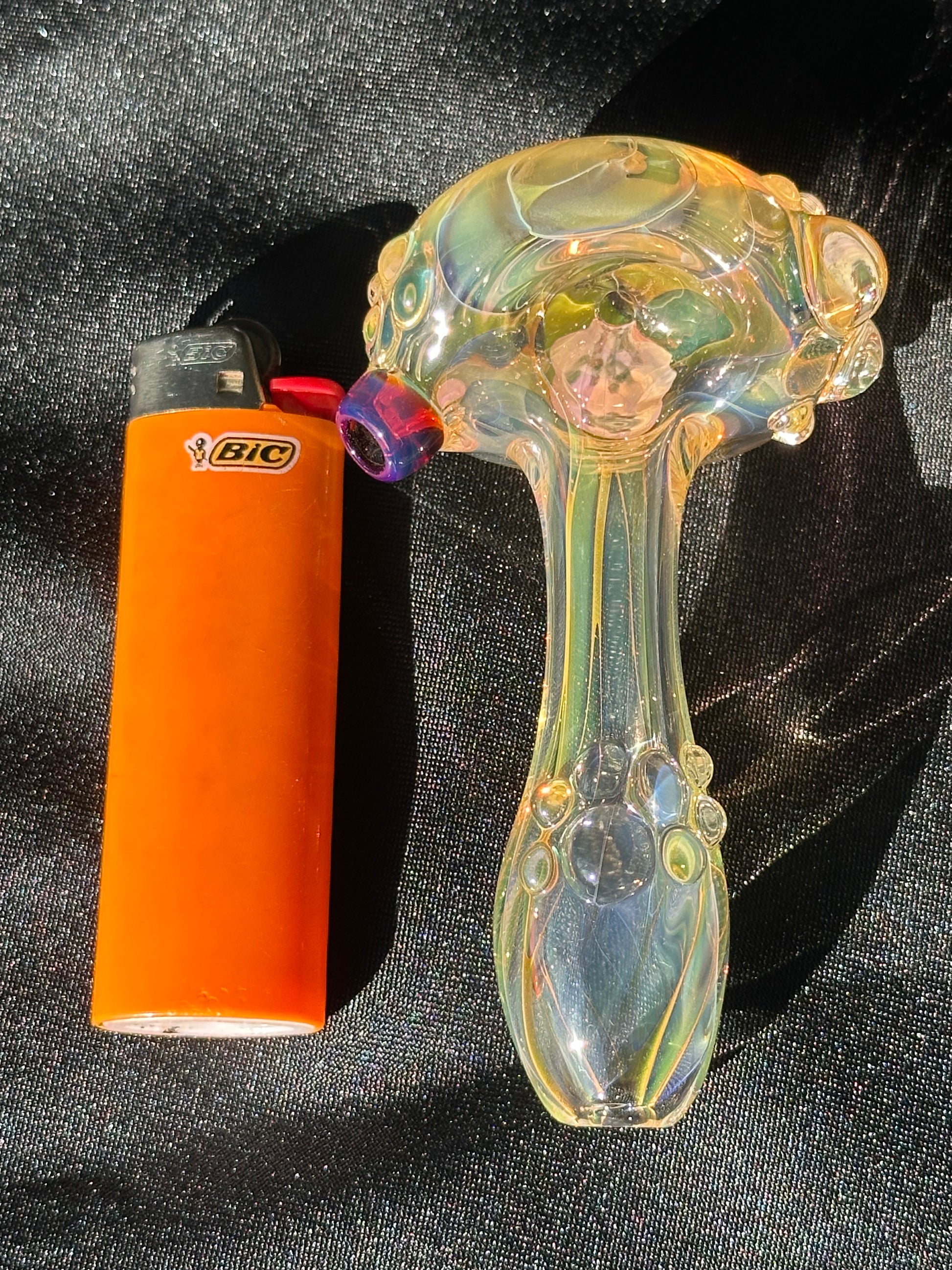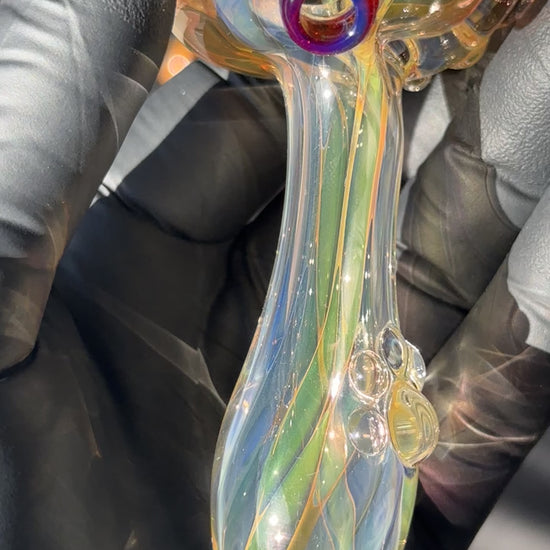 Inside-out Fumed Spoon Dry created using silver and gold fume trapped in side to create a wide range of colors from blues and purples to greens and oranges that will fill in as you use it.